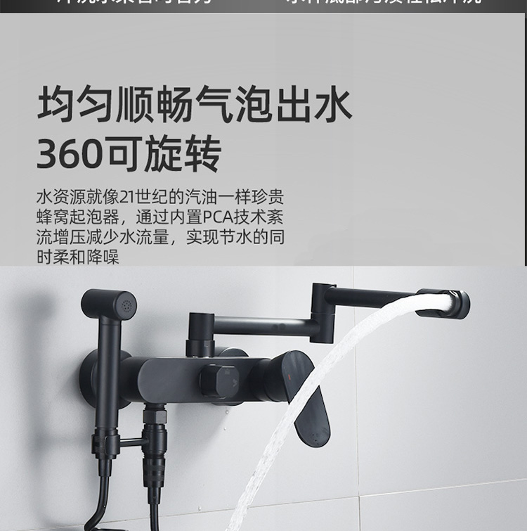 [brand direct marketing] copper black folding faucet cold and hot mop pool into wall double hole balcony mop laundry pool rotating mixing valve folding cold and hot bracket + spray gun [YaHei] [picture price brand quotation] - Jingdong